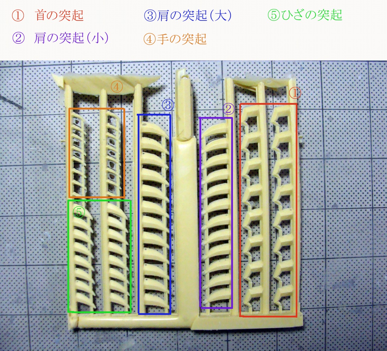 追記ですが、不足分の関節パーツに追加で太さ2mmのバネも腰の装甲を固定するのに必要になります。