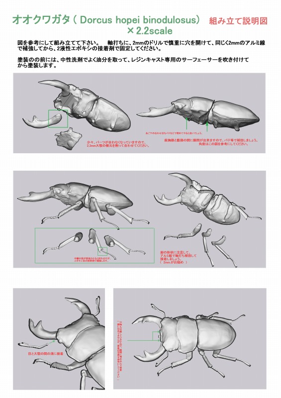 アメチヌスとオオクワのみ上のような組み立て説明書がついています。