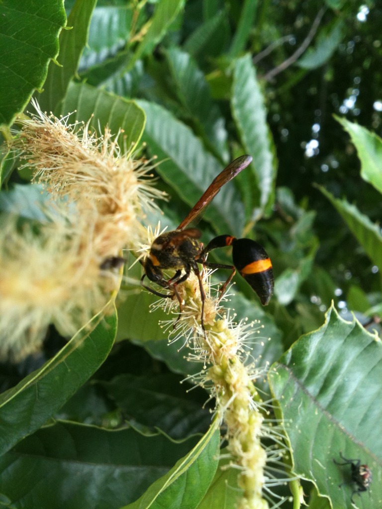 産卵中だったようで、細い栗の幹に産卵痕をあけているさいちゅうでした。