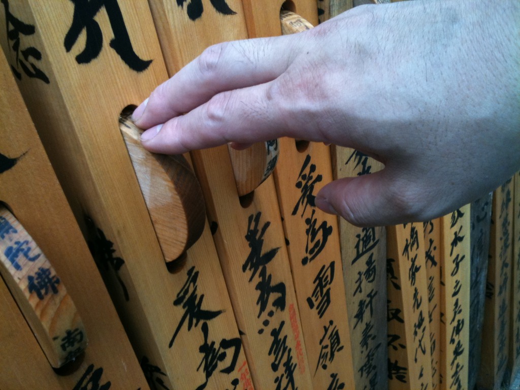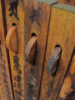 少々気になる物が。 卒塔婆に南無阿弥陀仏と書かれた車輪を付けている物があちこちにおいてあり、何かと思ったら、この車を回して拝むと、下に名前の書かれた人 (主に早くして亡くなられた人) が早く現世に戻ってこられるとか。