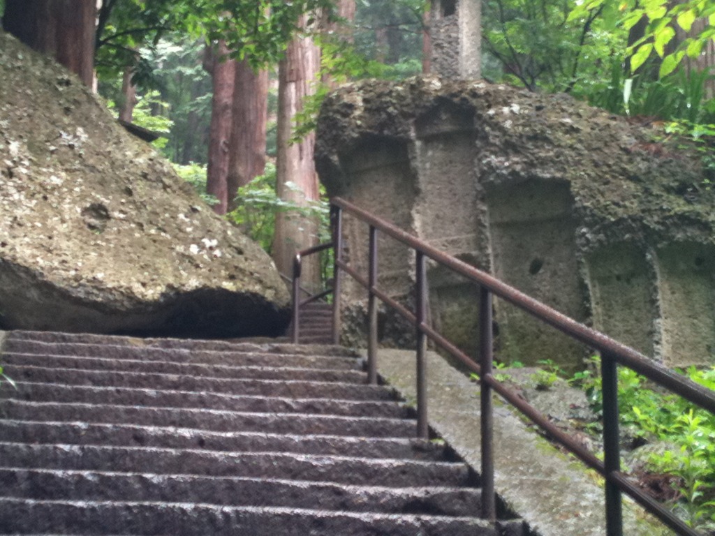 結構きつい階段を上っていくと、磨崖仏なのかな?恐らく岩をくりぬいたお墓。 あの世の入り口です。