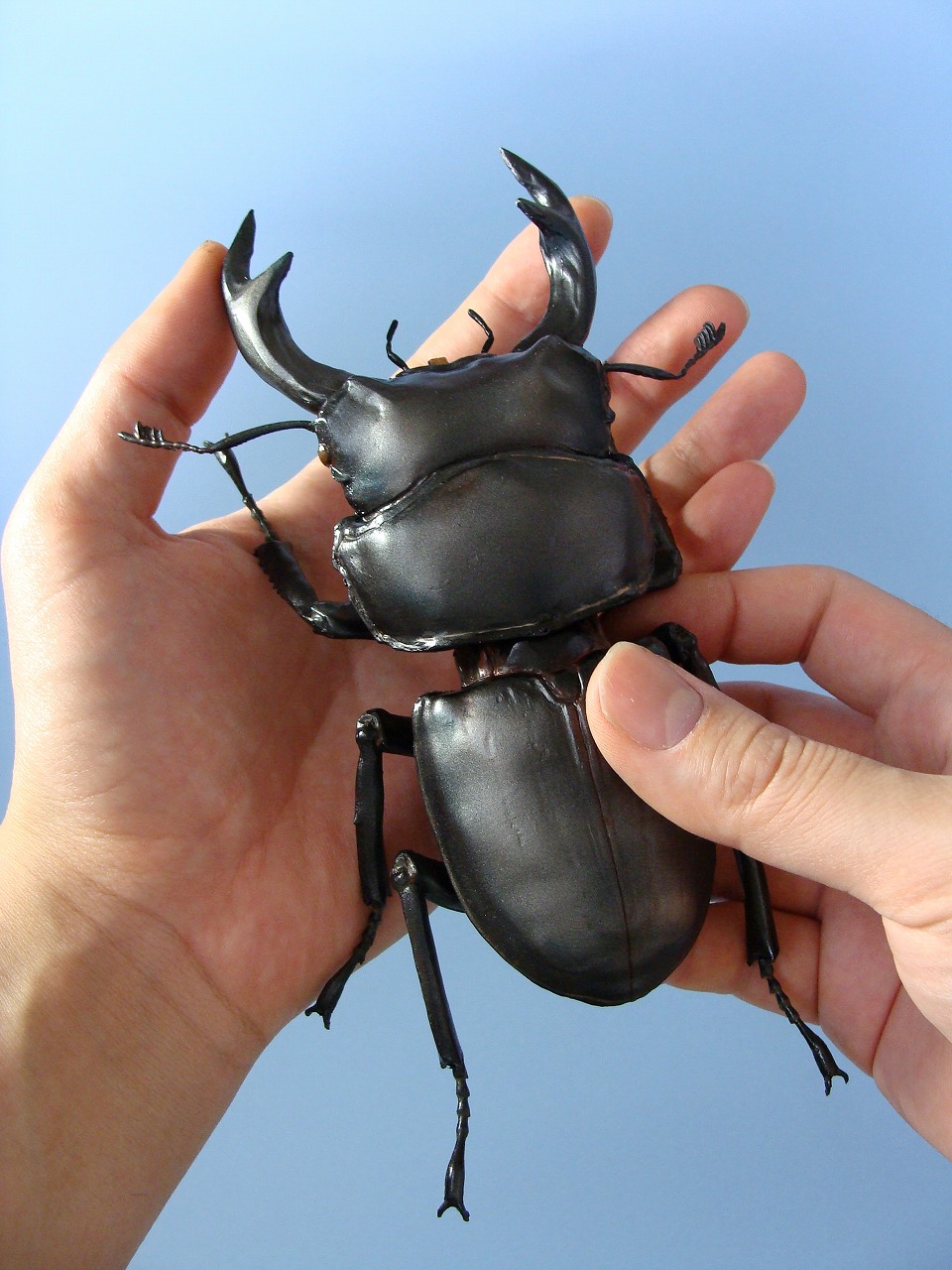キットの販売もしています 価格は5000円+送料です。(希望する方コメントに連絡先などを残していただければ受けたまります) 脚や触角には、補強のために細いステンレス線を封入していますので、ポロット折れずにくっついてくれています。(この埋め込む作業がほんとに面倒です。泣けてきますwww)