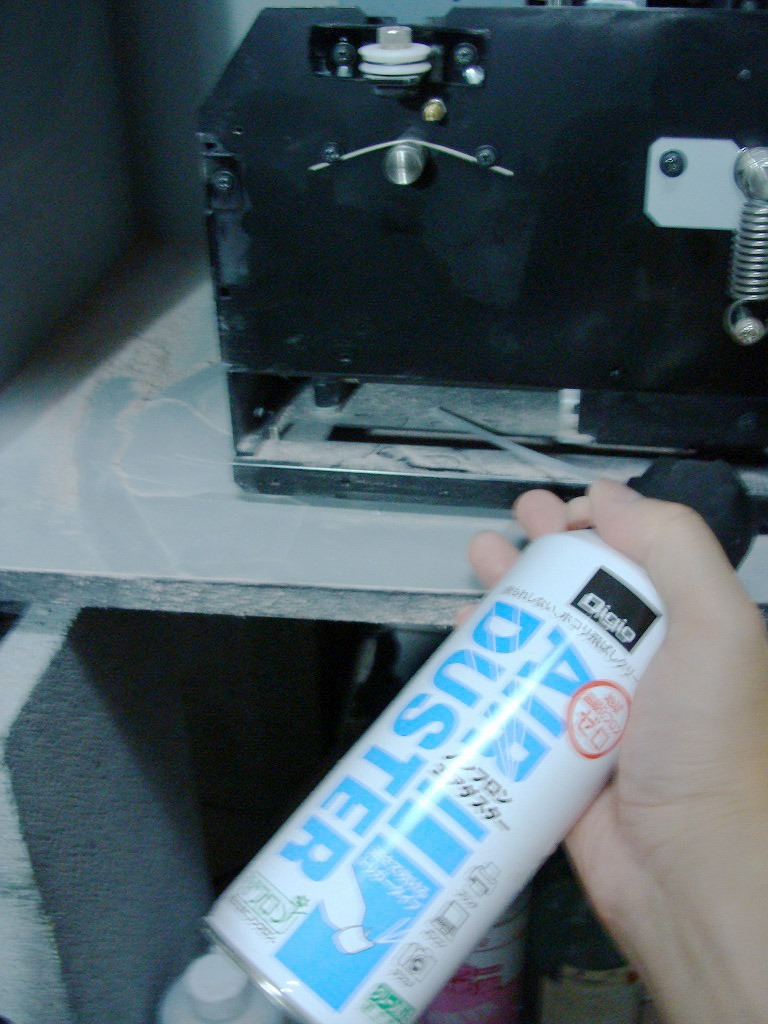 上のような状態で中が見えるのでエアーダスターやエアブラシ、細い筆などを使って切子を取り除く。