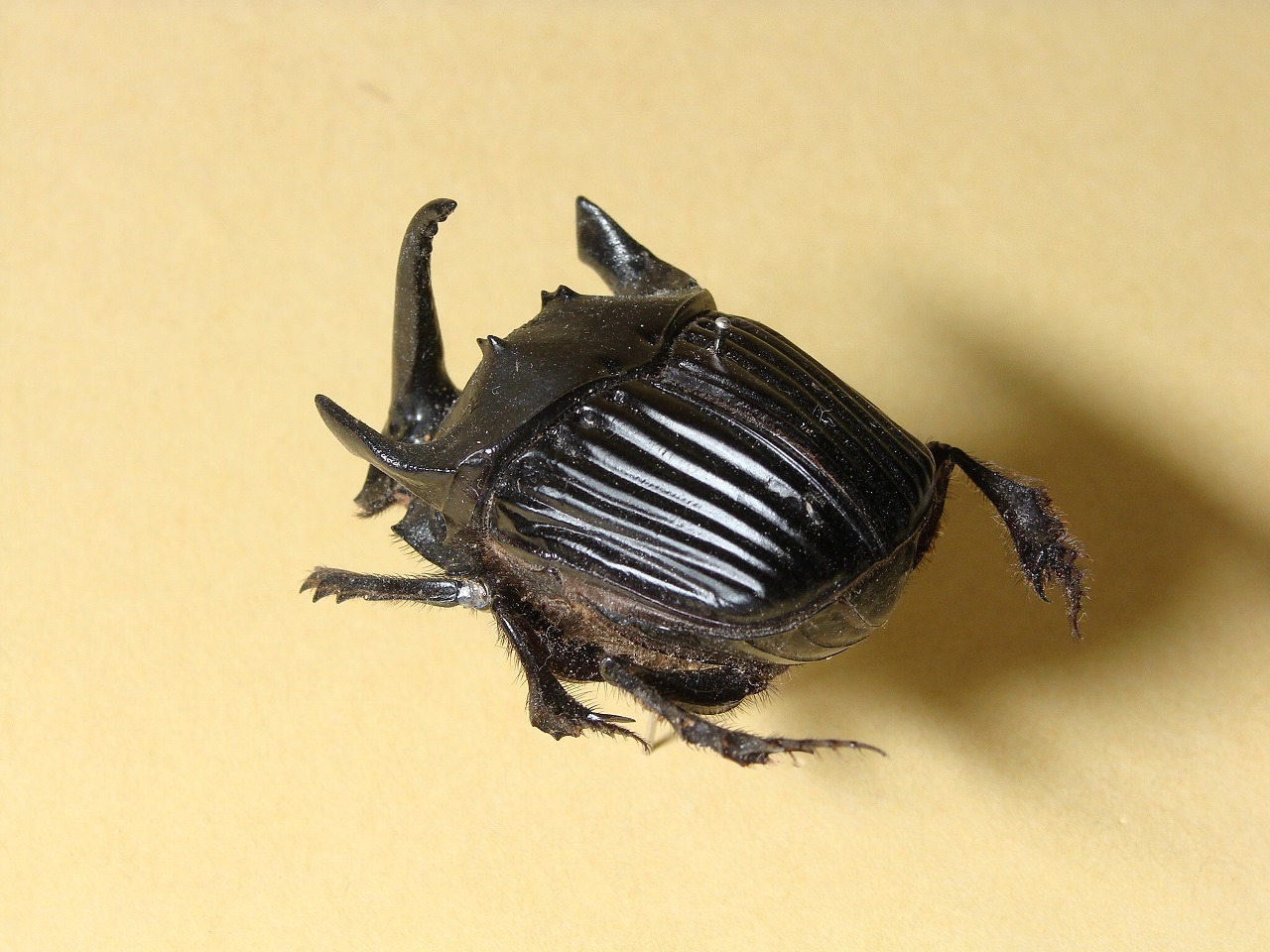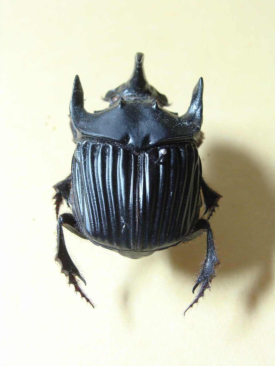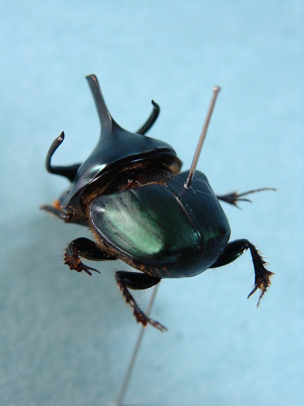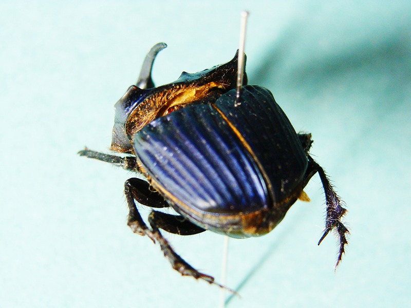 小さかったのであまりうまく写真で色なんかが再現されてませんが、深いメタリックの藍色をして、全胸部がパナェウス特有の三角がとてもかっこよい種類です。 ちなみに、現在このこがねむしをガレージキットに起こしています。