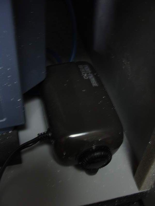 もう一つは、モデラの掲示板でzacodaの寺部さん (ここから私もモデラを購入しました!) がおっしゃっていた方法で、金魚などの熱帯魚の飼育に使うエアーポンプを使ってミルを常時冷却する方法で、私は最初500円の安いポンプを購入しましたが、全く使い物にならなかったので、3000円弱の深さが90センチの水槽でも使用できると言う高性能のポンプを使用する事にしました。