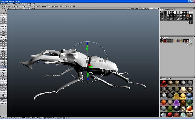 メタセコで大半を作った後に、生物らしいゆがみやRを表現したりする少し味付け程度にZBrushをつかうことにしました。