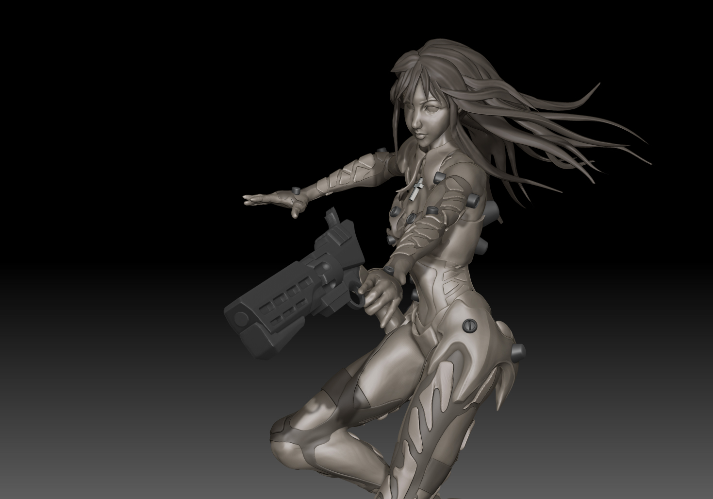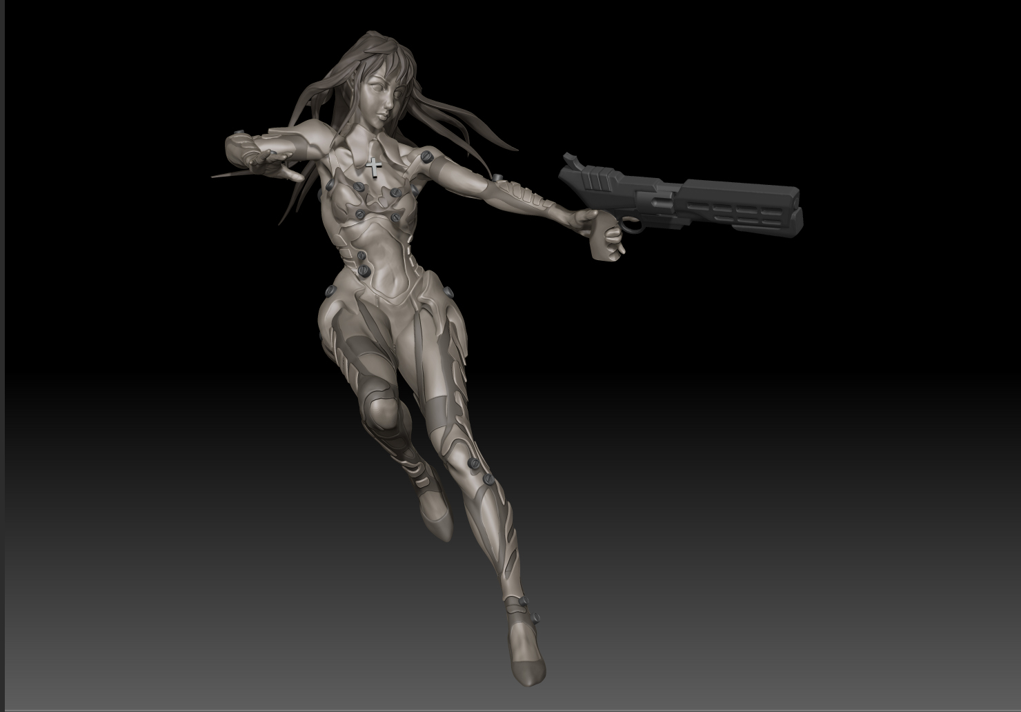 こんかいはキャラクターのデザイン、衣装、武器の銃などは全てオリジナルで。