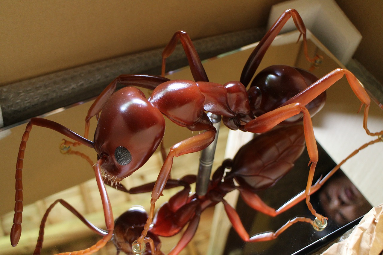 100倍拡大のアルゼンチンアリ、30センチほどの大きさです。 符節のつるんとした感じがなんともいいですね! ちょっと美味しそう。