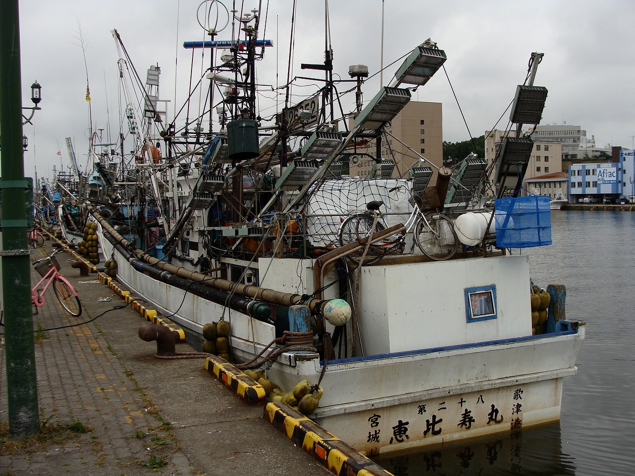 釧路港のサンマ漁船。 後ろに自転車とか積んであって随所に生活の知恵が。