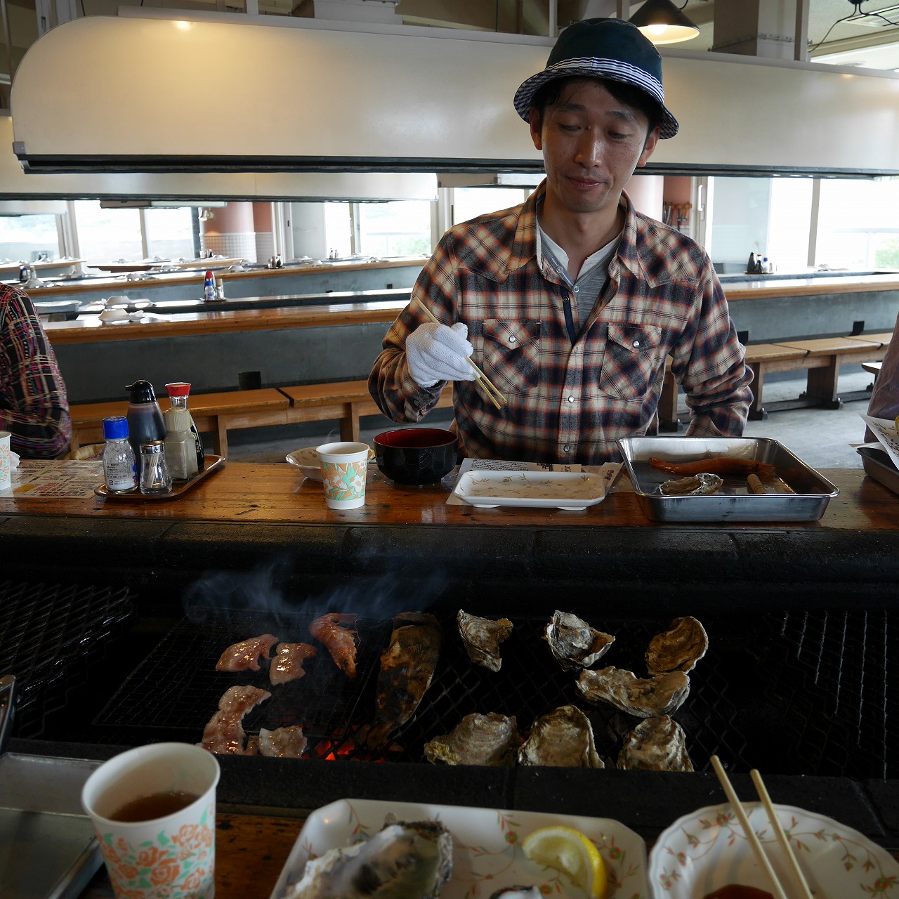 厚岸の道の駅(コンキリエ)にて昼食、牡蠣の炉端焼き。