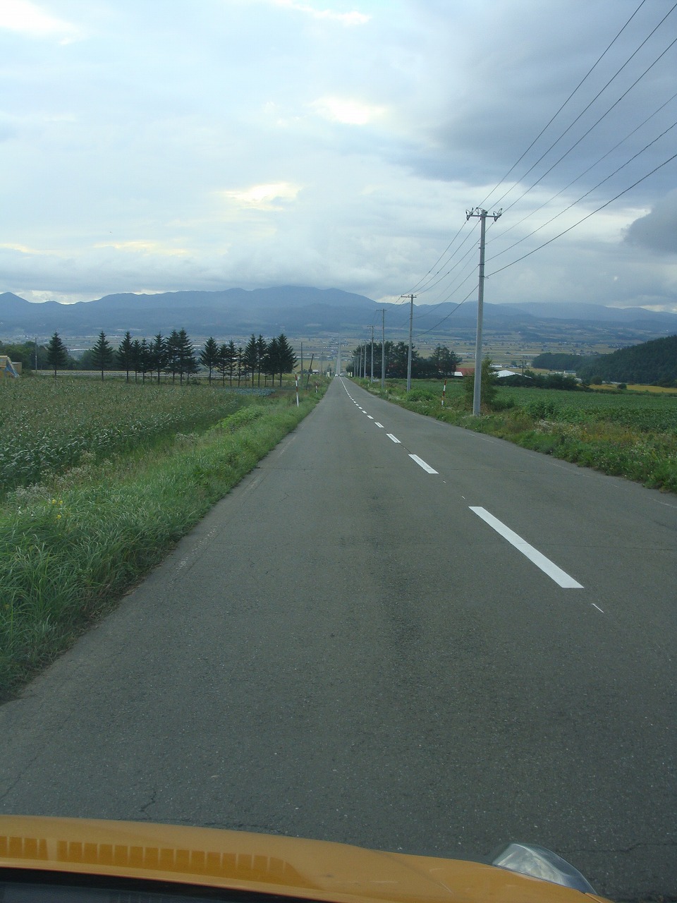 これが見たかったですね~ 何キロも先まで真っ直ぐな道! 坂の上から見下ろしてすり鉢状の下、さらの反対側の丘の斜面までずーっと先まで真っ直ぐ。