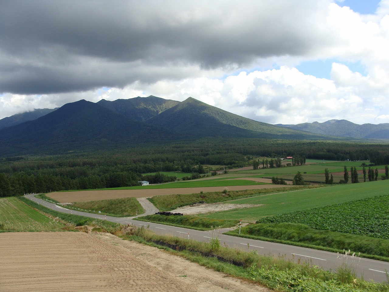 大雪山系の山々と富良野のジャガイモ畑 ホントに広々と気持ちが良かったです。