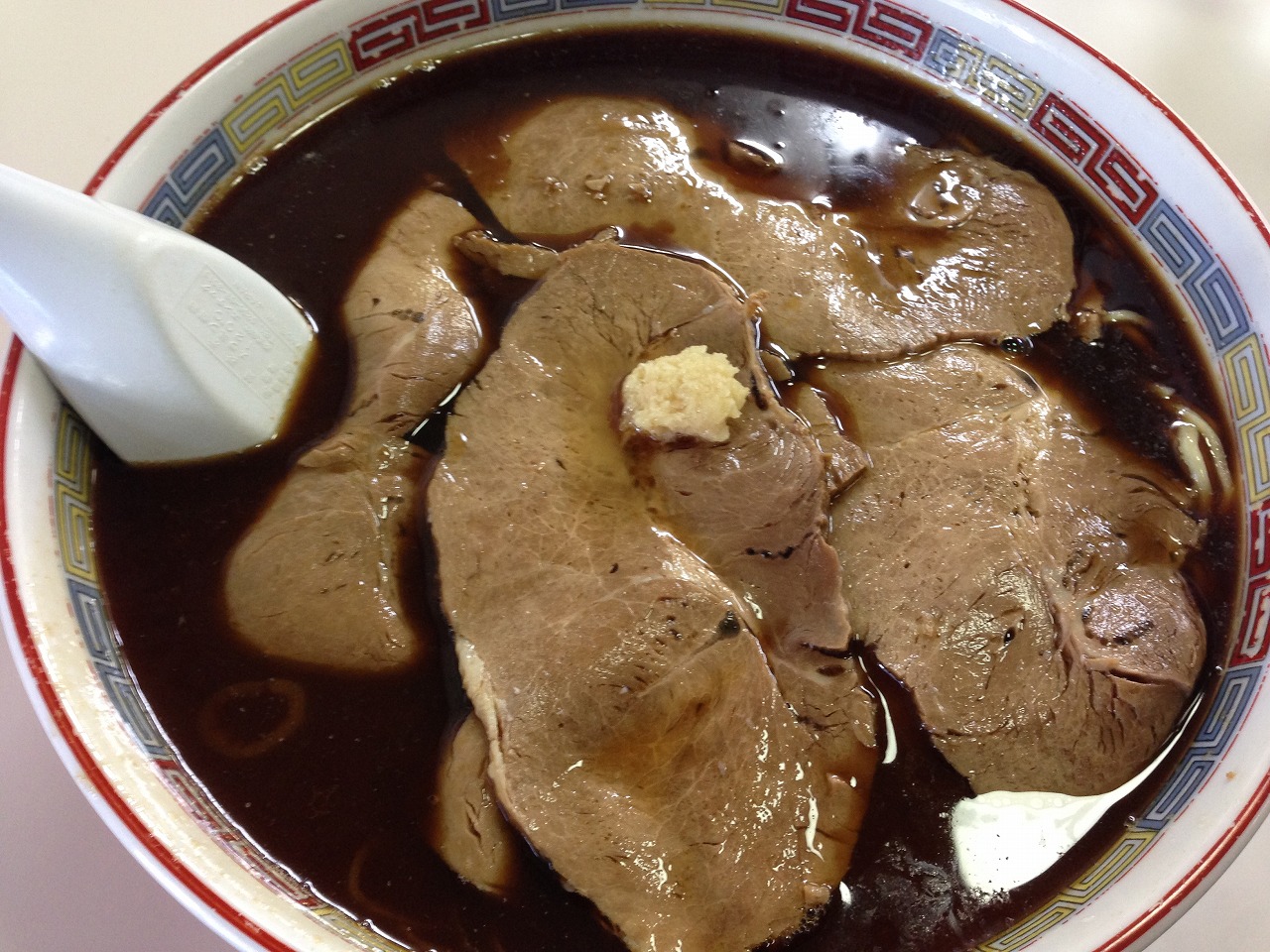焦がし玉ねぎで真っ黒なとんこつ醤油味のラーメンですが、おろしショウガも乗っていて