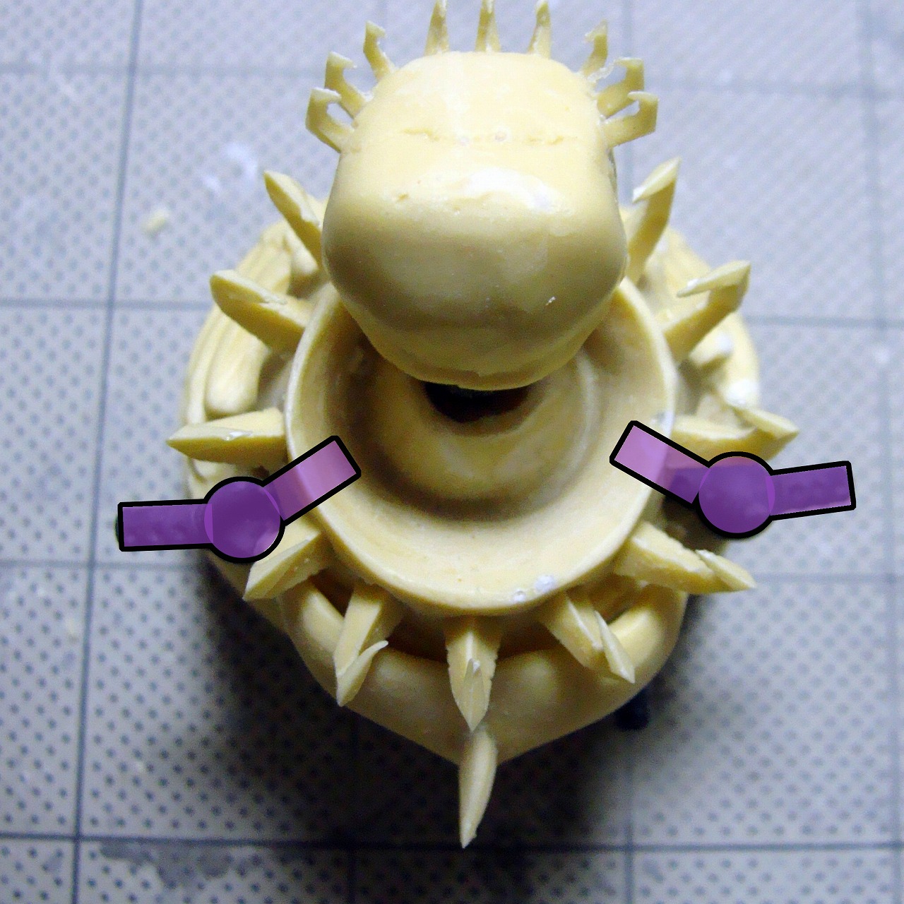 この際、そのままですとまだパーツ同士が干渉しますので、肩のパーツにやかんなどでお湯をかけて軟化させて2mmほど首との付け根を押し広げてください。 暖めたりないと割れます!(やけどに注意して)