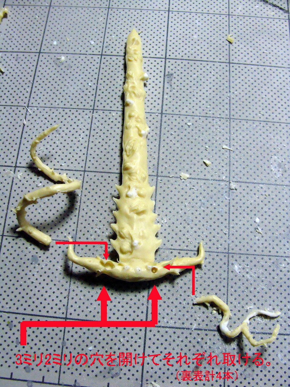 今回手流しでキャストの方を作りましたので、やもえず指先やとがった箇所の末端などに気泡ができてしまいましたが、ドリルの切子とシアノン、瞬間接着剤の硬化剤(アルテコなど)をうまく使うと手早く修正ができます。