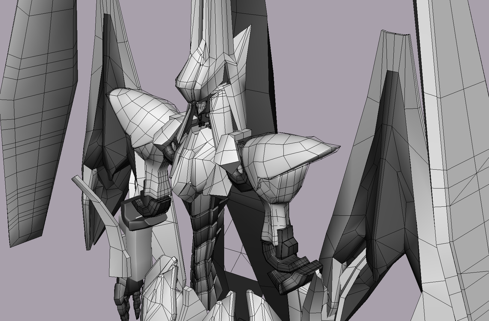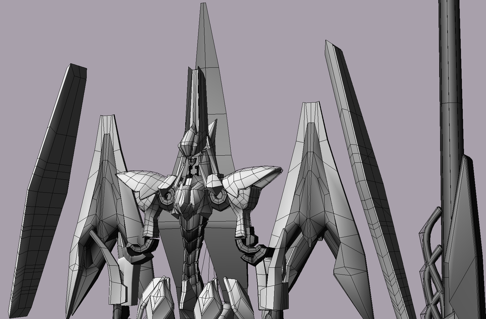 今使っているのメタセコですが、この後細部をつめていってZBrushで筋彫りとポリゴンのカクカクが残っている局面の処理とかして、ギミックもできれば再現したいですね。