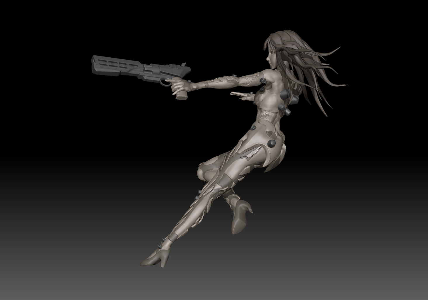 こんかいはキャラクターのデザイン、衣装、武器の銃などは全てオリジナルで。
